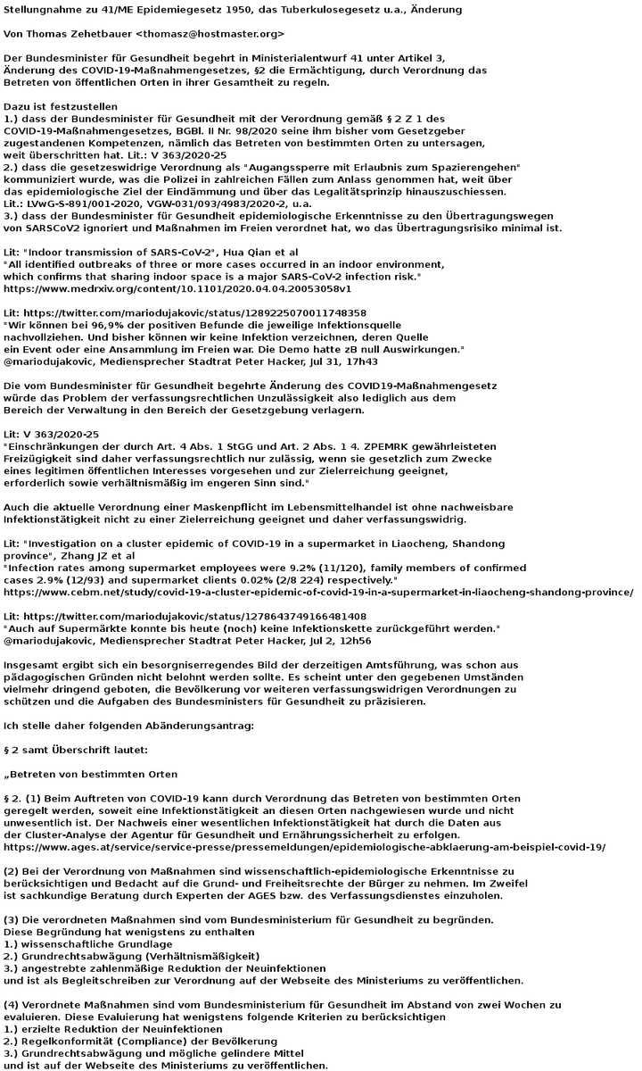 Meine Stellungnahme zum Gesetzesentwurf: