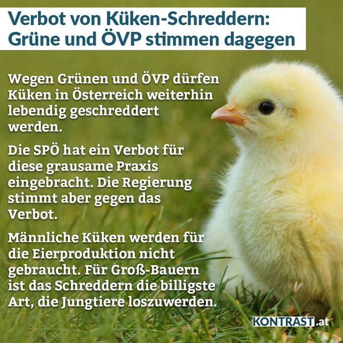 @SimonSchuster9 @PeterHorak10 Wie schon zuvor bei dem Antrag das Schreddern von männlichen Küken zu verbieten.
