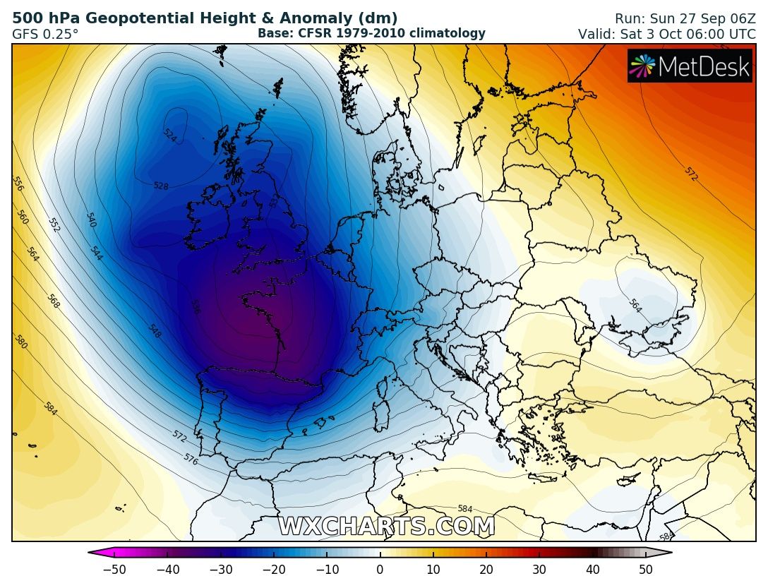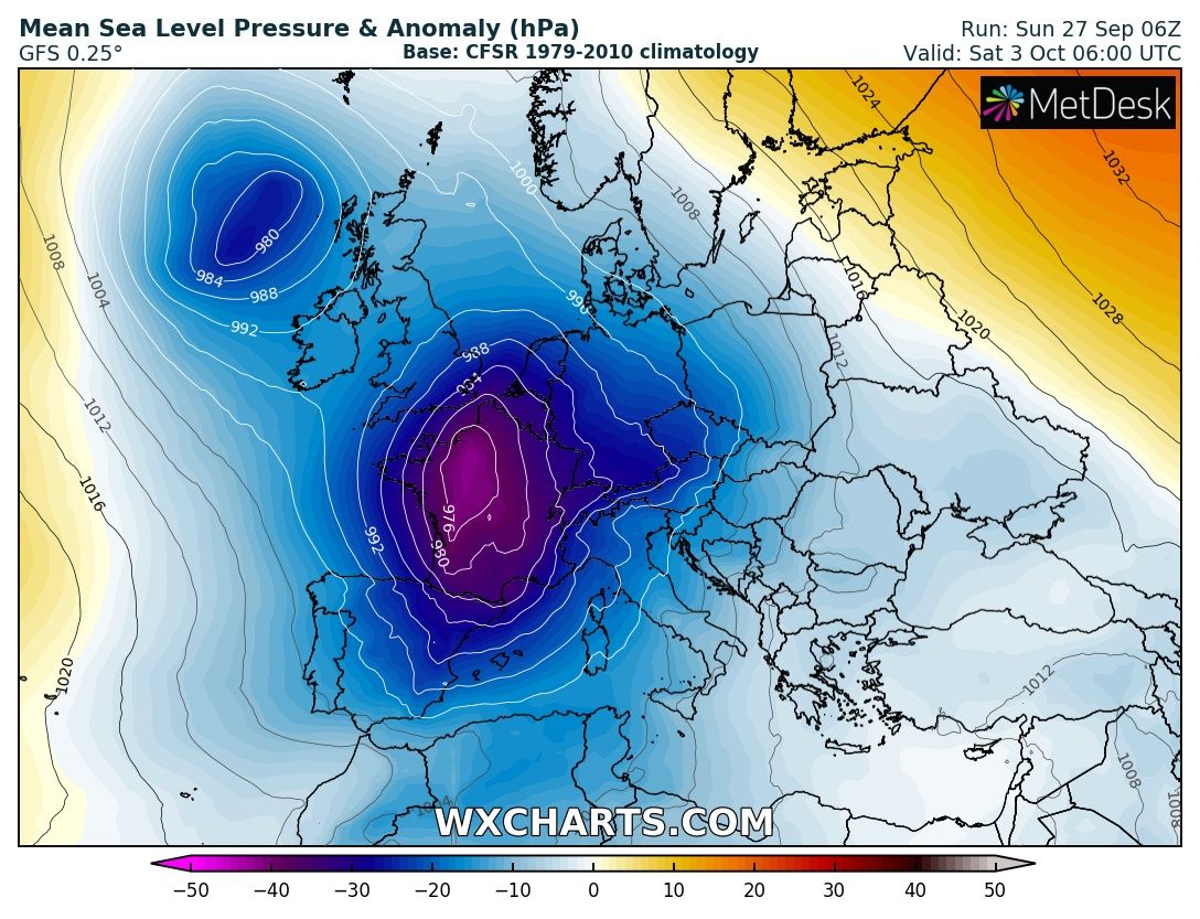 #GFS hat für Anfang Oktober einen kräftigen Wintereinbruch für Irland, UK, Frankreich, BeNeLux und Spanien auf dem Radar.