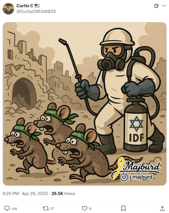 A chilling echo of Nazi propaganda, such as "Der Stürmer" depicting Jews as vermin. #Zionism