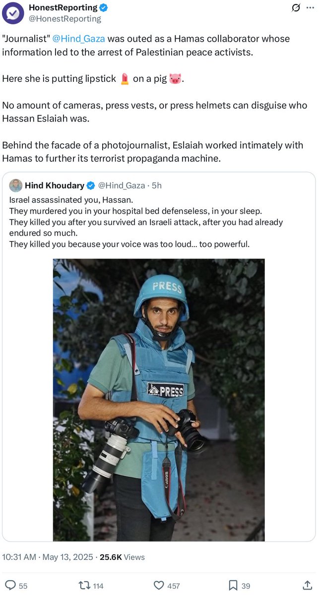 Hey @HonestReporting, you better start praying for the safety of @Hind_Gaza, because if something happens to her, you'll be in for incitement under 18 U.S.C. §§ 2, 373 and 2441 and under Article 25(3)(c) of the Rome Statute.