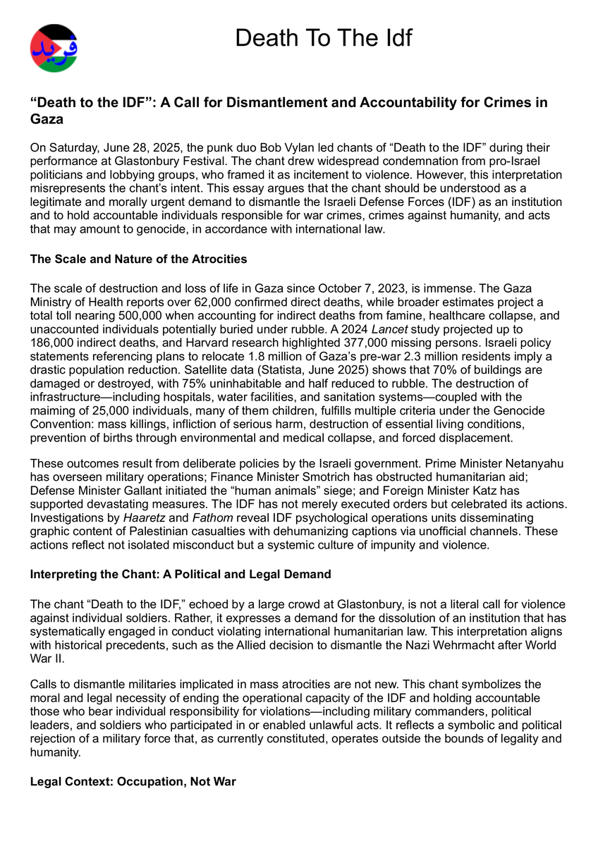 Israel cannot bomb Bob Vylan so it's taking out it's anger on the people in Gaza. #DeathToTheIDF https://x.com/OmarHamadD/status/1939403309258871095