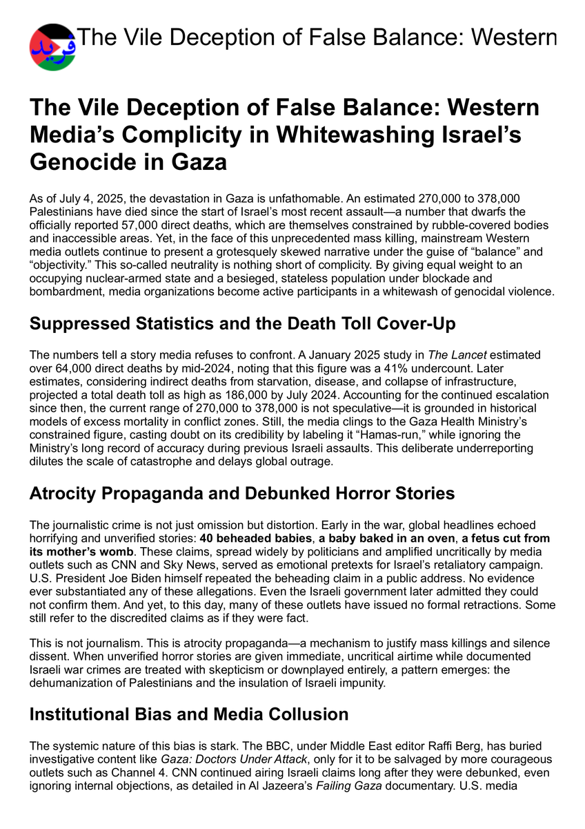 The Vile Deception of False Balance: Western Mediaโs Complicity in Whitewashing Israelโs Genocide in Gaza